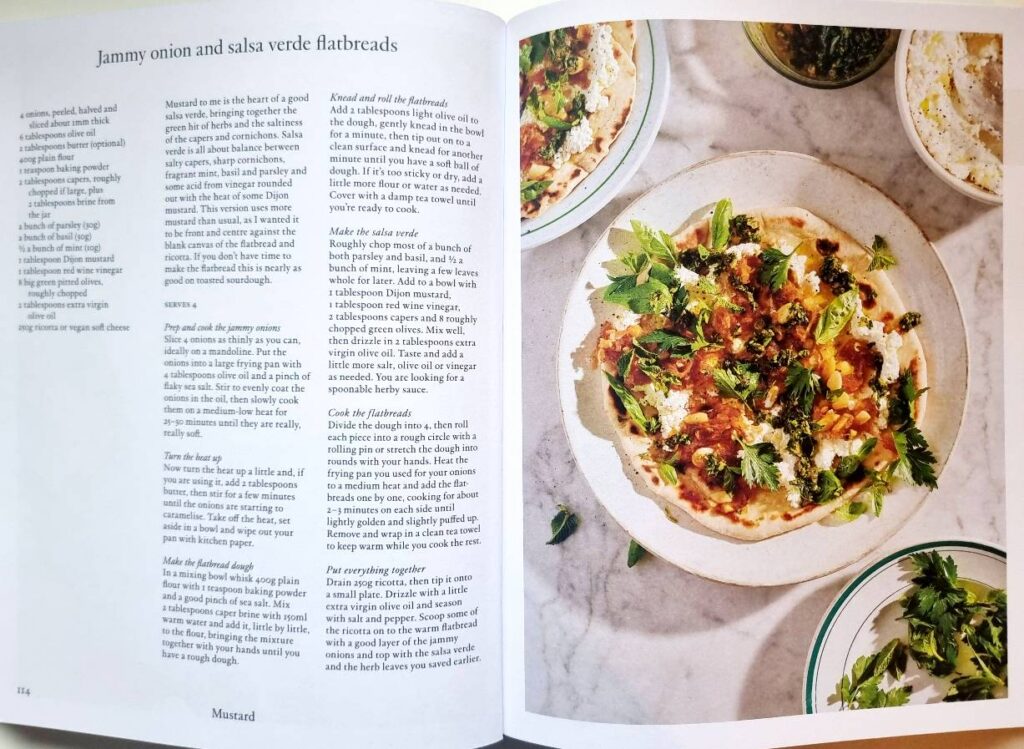 Each ingredient features around 10 to 12 recipes, adding up to a total of 125 recipes. The focus is mainly on main dishes, but there are also a few snacks and desserts. Think spring onion dip with olive oil, or caper chocolate ice cream. As with all of Anna’s cookbooks, there are also extra sections. This one includes chapters on salt and seasoning, vegetarian flavour swaps, and layering flavour. You really get excellent value for money with her books.